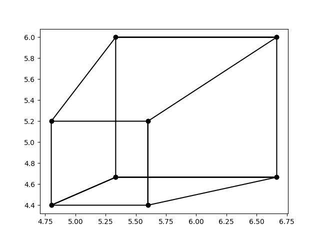 假设初始顶点序列表示一个顶点在原点,边长为2的正方体,视点在(4,4,-2),投影平面在$xOy$。
